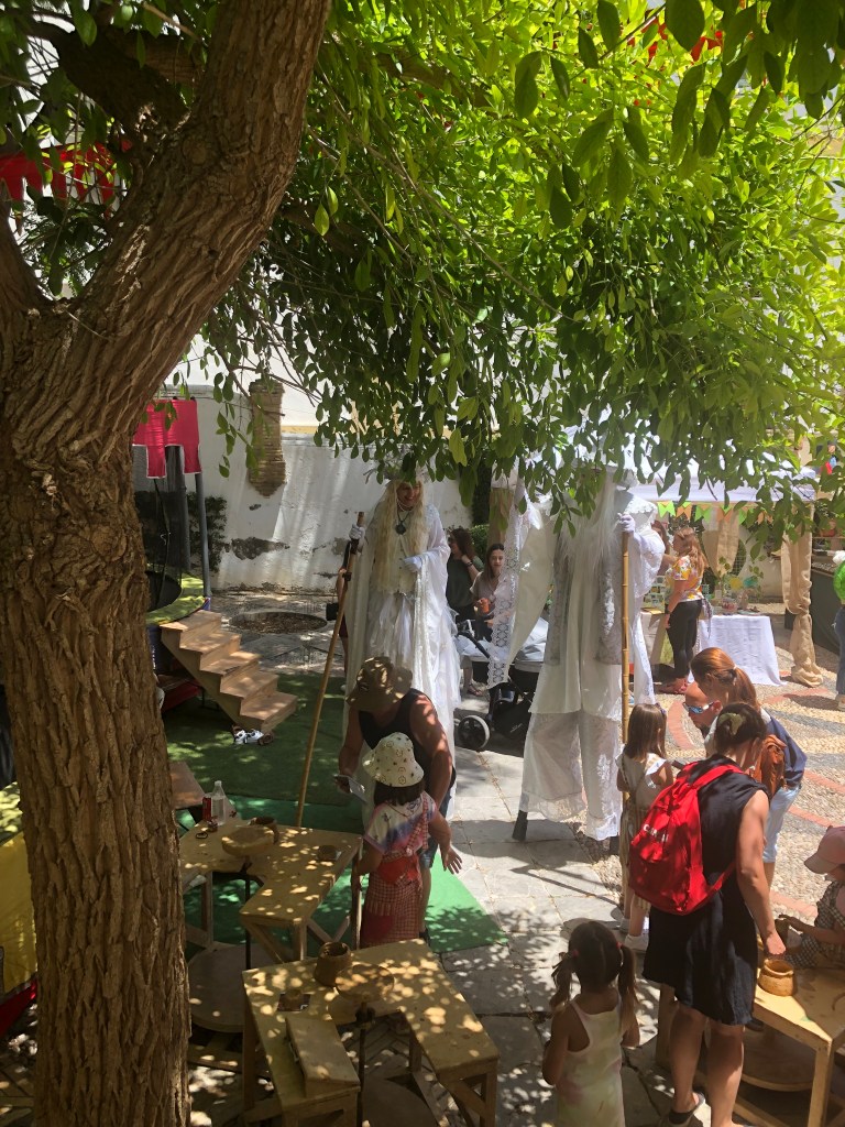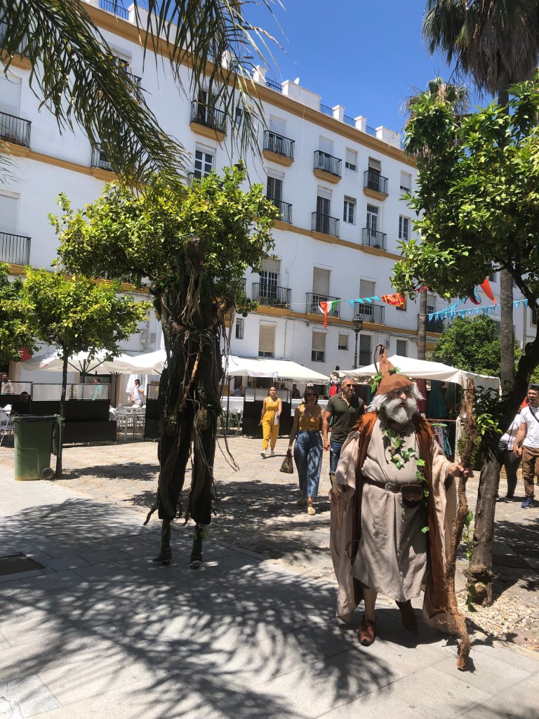 Nun bin ich in El Puerto angekommen und bin die ersten Tage tatsächlich ein bisschen überfordert. Andreas geht arbeiten und ich „muss“ mir die Zeit allein vertreiben. Gleich am 1. Tag habe ich Saxophon über Skype mit Nele, das klappt gut und ich freue mich, dass dies möglich ist. Das Geburtstagsgeschenk von Nele „Street Beats“ ist mein/unser Ziel für‘s Sabbatical. Ich übe jeden Tag, außer am Wochenende (bis jetzt – das kommt noch). Ansonsten bin ich die ersten Tage mit Wäsche waschen und Wohnung putzen beschäftigt. Der Levante-Wind bläst stark (die Wäsche trocknet sehr gut) und es regnet auch, mit 19,8 Grad ist es am Donnerstag kälter als in Deutschland. Natürlich bleibt Zeit für den Pool und den Atlantik. Hier geht man am Wasser spazieren/wandern, manchmal ist es ganz schön voll und man muss auf den Gegenverkehr achten. Baden im Atlantik ist schön, allerdings klebt man danach vom Salzwasser sehr. Am Mittwoch haben wir das 1. Mal nach der Pause (Andreas hat nochmal 20 Einheiten Spanisch bekommen) zusammen mit Loli Unterricht. Das ist sehr schön und macht totalen Spaß. Andreas ist auch schon ziemlich gut. Ich hoffe auch bald spanisch sprechen zu können. Loli gibt uns noch Empfehlungen für Bars und Restaurants in der Stadt. Donnerstag beginne ich das Buch von Petra „Eine Liebe in Australien“, welches ich in 5 Tagen fertiggelesen habe. Neben der kitschigen Haupthandlung, wird viel darüber geschrieben, wie die Aborigines behandelt wurden und werden, schon sehr heftig und macht nachdenklich. Am Freitag fahre ich Andreas mit dem Fahrrad zum Abholen von der Arbeit entgegen, wir treffen uns im „Los Torunos“, dem Nationalpark auf seinem Arbeitsweg. Wir fahren die „schöne Strecke“ zurück am Strand, es ist wunderschön am Strand Fahrrad zu fahren und gehen über den Mittelaltermarkt, welcher aber gerade schließt, da von 15-18 Uhr Pause ist. Zu Hause erhalten wir von Christoph die kurze Nachricht, dass er im Krankenhaus ist und gleich operiert wird, da er eine Schenkelhalsfraktur hat. Oje, das war nervenaufreibend. Ich habe sofort alle Flugmöglichkeiten nach Dresden gecheckt und war schon fast wieder in Deutschland. Wir wollten eigentlich zum Mittelaltermarkt, konnten dann aber gefühlsmäßig nicht und haben lieber auf Nachricht von Christoph gewartet. Christoph hat sich dann auch ziemlich schnell nach der OP gemeldet und wir waren dann erstmal ein bisschen beruhigt. Es ist bei einem Fahrradsturz passiert. Ein Unfall ist immer doof, Christoph hatte gerade seit ca. 2 Wochen ein Praktikum an der Schule und hat sich dort wirklich wohl gefühlt. Nun war Krankenhaus angesagt. Als Mutter ist es schon schwer, nicht da zu sein, aber es ist auch schön zu sehen, wie die Kinder ihr Leben allein meistern und sich auch gegenseitig helfen. Obwohl Daniel in der nächsten Woche Chemieolympiade hat, will er nächstes Wochenende nach Dresden zu Christoph fahren. Wirklich schön. Christoph muss nun wieder das Laufen lernen, mit Krücken. Am Samstag machen wir uns dann doch auf den Weg zum Mittelaltermarkt in El Puerto, wandern an den Ständen entlang und lauschen der Musik, den Gerüchen und verkleideten Figuren (Menschen, Bäumen etc.). Wir probieren noch eine Empfehlung von Loli, das APOLO (Plato y Tapaz), aus und sind wirklich vom Oktopus begeistert. Vielleicht werden wir doch noch richtige Fischliebhaber. Sonntag schlafen wir erstmal aus, bauen an der Abstellkammer und am Nachmittag fahren wir zu Sahra und Jens in eine Finka in der Nähe von Veijer Doppelkopf spielen. Andreas hat Sahra auf einem Flug nach Hamburg kennengelernt und sie haben sich zum Doppelkopf spielen verabredet. Sahra kann die Regeln gut erklären und ist auf der Suche nach einer festen Gruppe, mal sehen, ob wir das werden. Einmal hatten wir schon im April gespielt. Es war wieder ein schöner Nachmittag/Abend. Wir verabreden uns für in 14 Tagen. Jens hatte einen Freund zu Besuch, der ein paar Tage Zwischenstopp beim Segeln gemacht hat. Er erzählt viel über die Orcatruppe in der Straße von Gibraltar, die Segelboote angreift. Irgendwann muss ich dann Andreas aus dem Haus ziehen, Sahra ist schon ins Bett gegangen.