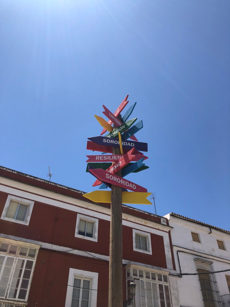 Nachdem wir am Montag nach langer Suche mit Hilfe endlich die Stadtinformation gefunden haben, fahre ich am Mittwoch mit dem Stadtbus ins Zentrum. Die Information hat nur von 10-14 Uhr offen und ist selbst, wenn sie geöffnet hat, schwer zu erkennen. Ich bekomme dann aber meinen Stadtplan und frage noch nach einer Flamenco Tanzschule. Sie freut sich ganz doll, muss aber auch Googeln. Vom Stadtplan inspiriert gehe ich den Jakobsweg durch El Puerto. Es gibt hier wirklich schöne Ecken. Die Zeichen für den Weg zu finden, ist nicht immer einfach, aber es klappt dann doch. Es lohnt sich auch immer mal kurz halt zu machen und ein bisschen zu gucken. Die Störche auf dem Dach der Basilica Menor auf dem Plaza Espana habe ich erst nach einigen Minuten gesehen. Ich treffe mich mit Andreas nach dem Feierabend an einer Bar am Fluss auf ein Bierchen und wir freuen uns am Leben in Spanien. Am Donnerstag besucht uns Andreas ehemaliger Chef, erst auf der Terrasse, dann gehen wir ins Restaurant. Es wird viel über die Spanier und deren Mentalität, besonders in Bezug auf die Arbeit gesprochen. Freitag haben wir unsere nächste Spanischstunde. Loli besorgt mir einen Friseurtermin, nachdem sie mir mehrmals erklärt hat, was ich beim Anrufen sagen soll. Am Samstag sind wir echte Spanier und frühstücken erst um 11 Uhr. Wir bauen an/in der Wohnung, ich ziehe mit meinen Sachen mit ins Schlafzimmer und zum Abend gehen wir zum Monkey Weekend. Obwohl wir erst um 20 Uhr los sind, fängt es gerade erst richtig an. Wir wissen nicht, wo wir das Bändchen für den Eintritt herbekommen sollen, aber es sind auch genug Konzerte außerhalb. Es ist coole Stimmung, wir trinken Bierchen, lauschen den Konzerten, Tanzen und haben Spaß. Hier sind wirklich auch die kleinen Kinder noch spät unterwegs. Es beruhigt uns aber, dass auch diese teilweise kaputt/müde sind und einfach in ihren Kinderwagen schlafen. Am Sonntag gibt es neue Flip Flops von Reef für mich, da meine Badelatschen auf dem Weg zum Atlantik kaputt gegangen sind. Gut, dass es auf dem Weg gleich den richtigen Laden – Wave District – gibt, vorher gab’s noch lecker Nachos im Surf Shop Caffee. Am Abend gucken wir Tatort. 🙂