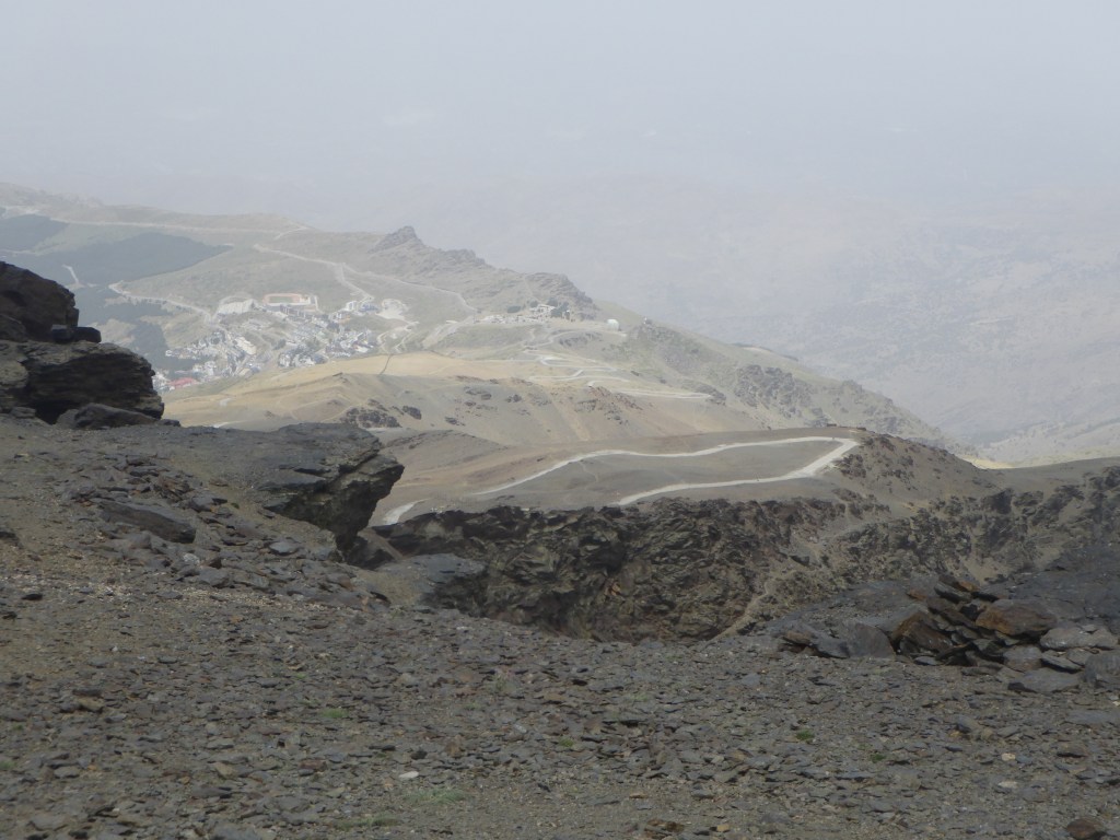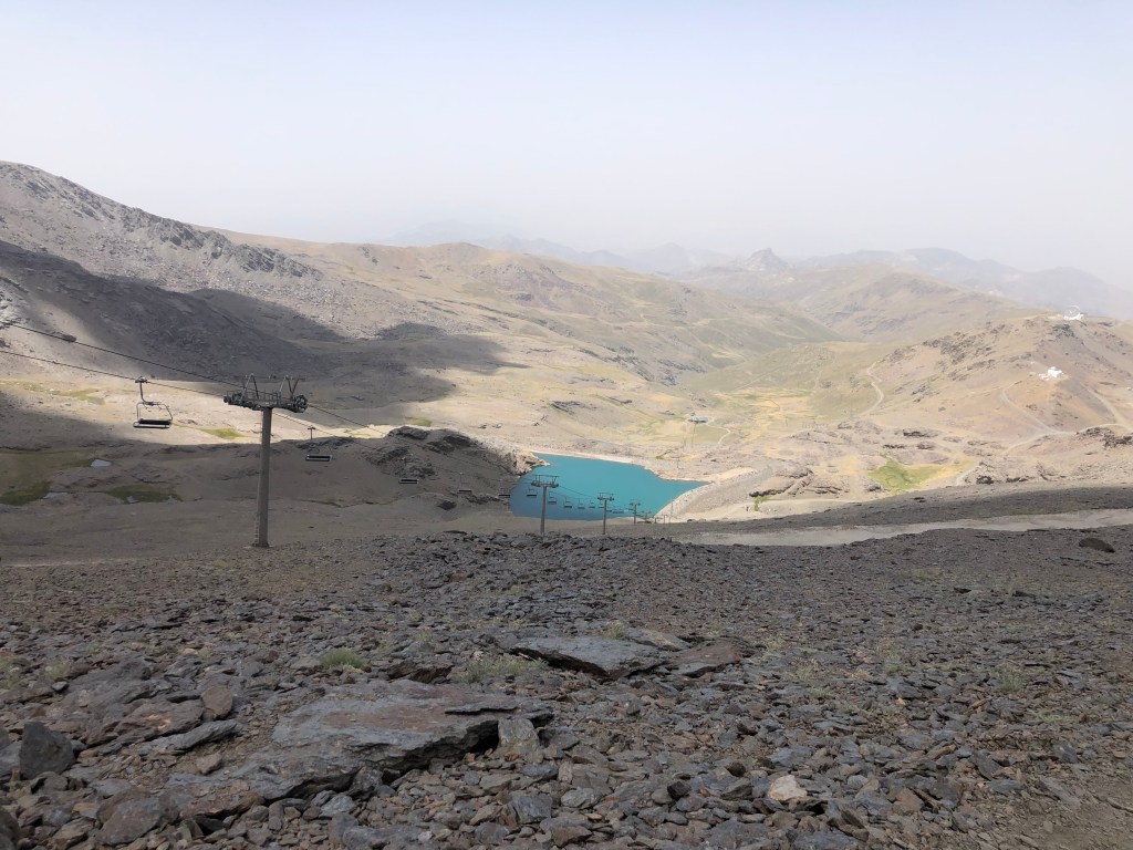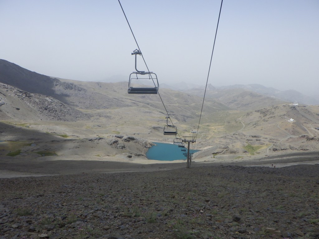 Die Spritze hat sehr gut geholfen, am Dienstag früh bin ich schmerzfrei und hoffe, dass der Rest sich auch erledigt. Wir wollen heute in die Sierra Nevada. Andreas ist noch früh zur Arbeit. Ich packe den Bus zu Ende und telefoniere fast 2 Stunden mit Christoph. Morgen beginnt seine ambulante Reha. Zu 14 Uhr fahre ich Andreas von der Arbeit abholen. Wir treffen uns in der Boccadillo Bar mit Oskar. Oskar wundert sich, dass wir bei dem Wetter in die Sierra Nevada fahren wollen, gibt uns dann aber Tipps, welche Wanderungen man dort gut machen kann. Wir verstehen dann, was Oskar meinte, als wir dichter zu unserem Zeltplatz kamen. Es wurde immer heißer. Unser Plan ins Kühle zu fahren hat erstmal nicht geklappt. Der Zeltplatz in Güejar Sierra ist sehr schön, allerdings auch ziemlich teuer. Um 21:30 Uhr sind noch 30 Grad. Gegen Mitternacht schlafen wir dann doch ganz gut in unserem Bus. Wir haben die Keckklappe und Türen offen gelassen und mit Gardinen abgehangen. Andreas hatte am Montag noch in der Werkstatt angerufen und wegen einem Termin wegen der Motorleuchte gefragt. Wir haben einen Termin am Freitag, es ist aber kein Problem mit dem Bus zu fahren. Mittwoch früh entscheiden wir uns, nur eine Nacht auf dem Zeltplatz zu bleiben und fahren dann los ist die Sierra Nevada. Bei den kleinen Serpentinen mit Steigungen von 22% hat der Bus dann doch ein paar Probleme. Er beschleunigt nicht, wir müssen auf der LKW-Spur fahren. Im Ort Sierra Nevada angekommen ist es angenehm von den Temperaturen, nur 27 Grad. Wir fahren mit der Gondelbahn und dem Sessellift hoch und starten unsere Wanderung bei 22 Grad. Echt schön. Obwohl es hier baumlos ist, haben wir Schatten, da immer eine Wolke über uns ist. Eine tolle Wanderung, die als Spaziergang begann. Wir sind bis hoch auf den Pico del Veleta, 3396 m, wahrscheinlich unser bisher höchster Berg. Wir sind gerade mit dem Sessellift auf der unteren Station, da beginnt es zu donnern. Eigentlich wollten wir noch kurz zum See gucken, entscheiden uns dann aber für die Rückfahrt mit der Gondel. Es kommt kein Gewitter. Andreas sucht uns ein Hotelzimmer und wir verbringen den Rest des Tages in Sierra Nevada und träumen vom Winterurlaub hier, dem südlichsten Skigebiet Europas.