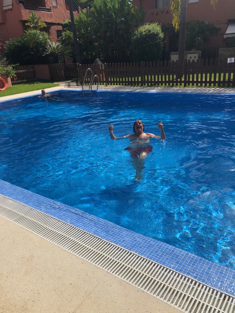 Glücklicherweise hat es bei Andreas gut geklappt, er hat einen blauen Seat bekommen. Endlich geht’s nach „Hause“. Wir entspannen auf der Terrasse und irgendwann muss dann Schlaf nachgeholt werden. Samstag früh geht’s dann wirklich in den Pool für Andreas und Steffen.
