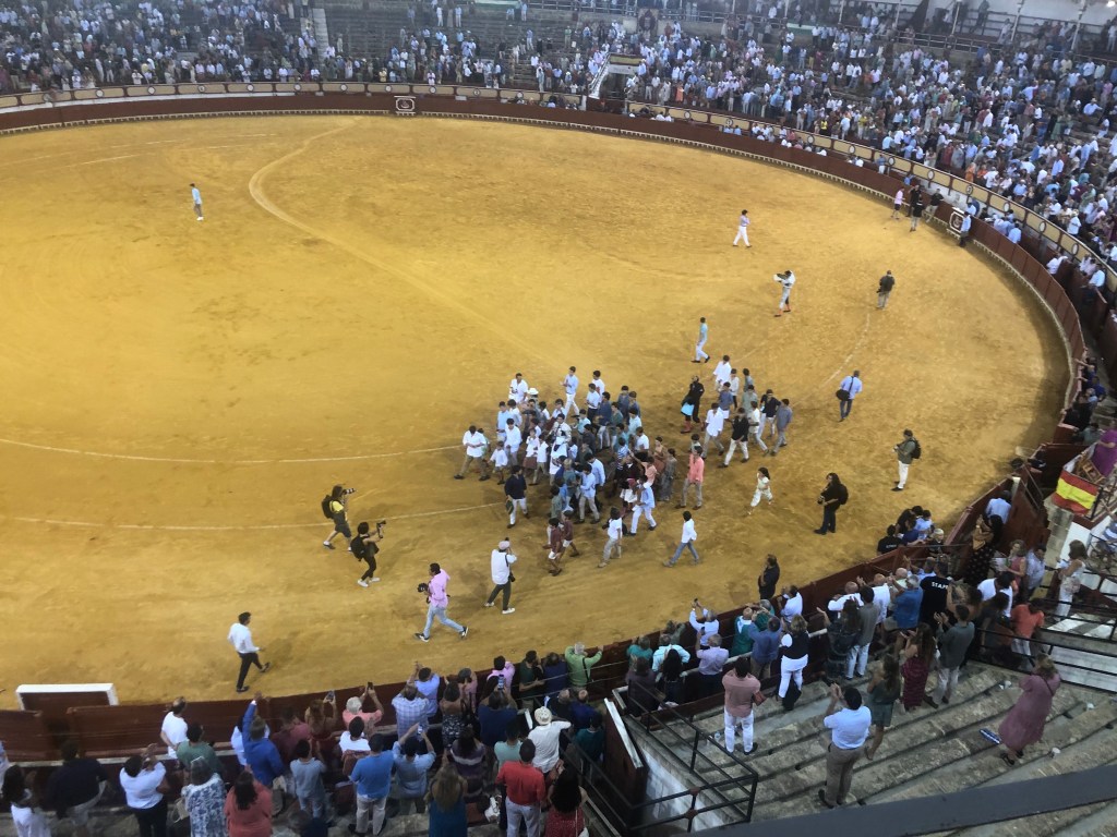 Plötzlich, ohne eine Ansage ging der Stierkampf los. Es ist immer der gleiche Ablauf, insgesamt 20 Minuten. Ich dachte wir sehen nur einen Kampf, es waren insgesamt 6. Beim 6. Kampf wurde der Torero zweimal auf die Hörner genommen. Das tat bestimmt weh, aber er lässt sich nach kurzer Pause feiern. Wir sind uns sicher, dass wir nicht nochmal zum Stierkampf gehen werden, wissen aber auch nicht wirklich was wir von der Veranstaltung halten sollen. Leider konnten wir die Zwischenrufe nicht verstehen und auch nicht das Winken mit den weißen Tüchern richtig zuordnen.