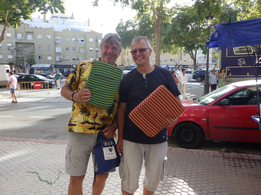 Um 19 Uhr fahren wir mit dem Bus in die Stadt. Der Bus ist voll mit vielen Sitzkissenbesitzern in den spanischen Nationalfarben. An der Stierkampfarena ist es sehr voll, aber irgendwie beeindruckend, wie eine ganze Stadt zu dem Event läuft. Vor der Arena können wir nicht widerstehen und kaufen uns auch jeweils ein Kissen. Diese hätte man nicht wirklich gebraucht.