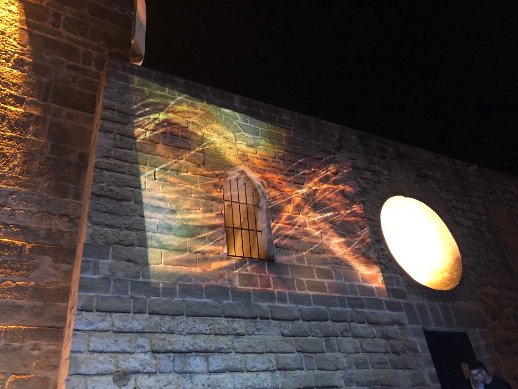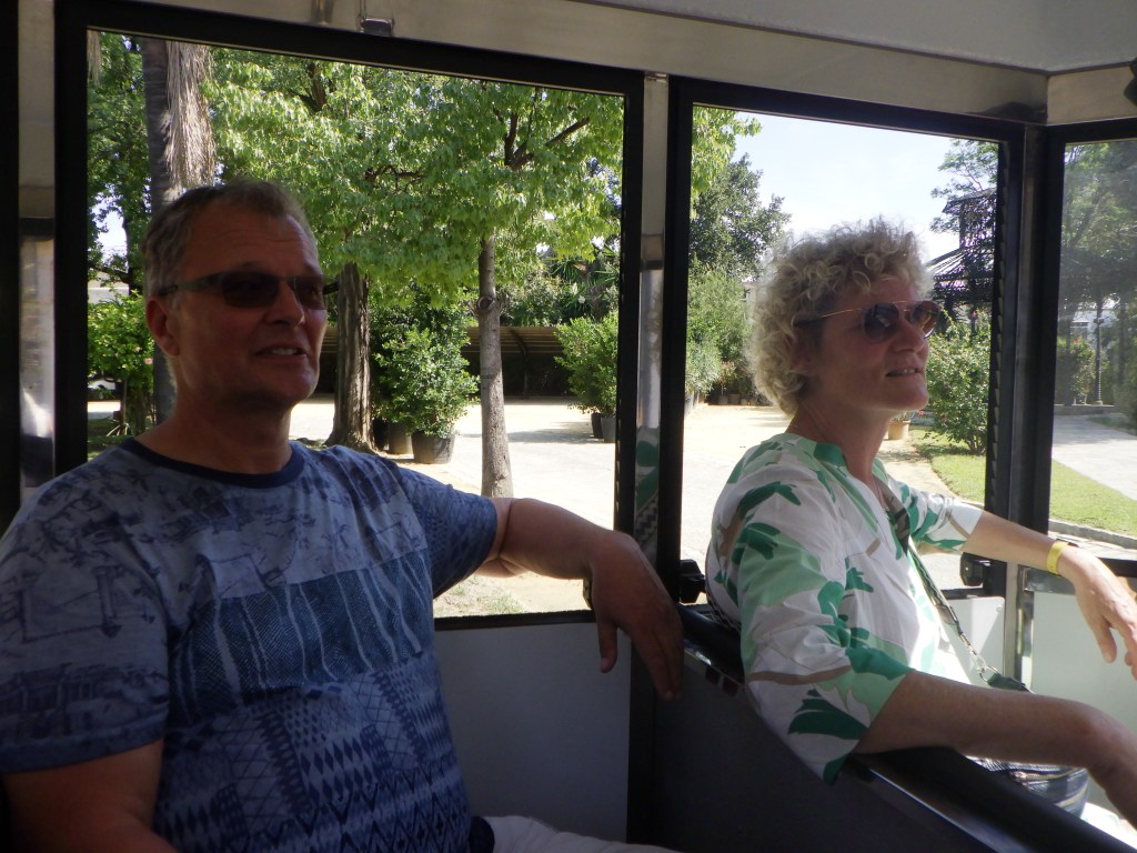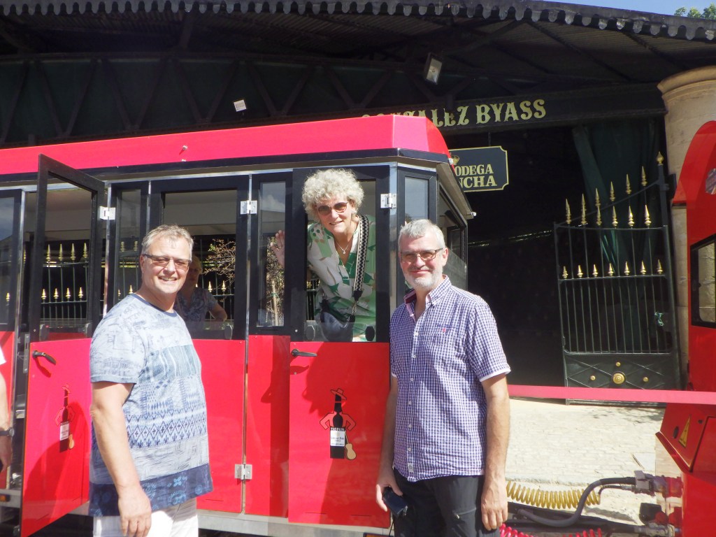 Am Dienstag geht Andreas arbeiten und wir starten den Tag gegen 9 Uhr mit dem Frühstück im Garten. Wir machen eine große Runde am Strand und holen Andreas von der Arbeit für die Tio Pepe Führung und Verkostung (Sherry + Tapas – unser Geburtstagsgeschenk für die Holzkes) in Jerez ab. Es ist eine schöne und interessante Führung mit Zugfahrt; die Tapas sind leider nicht besonders berauschend, aber der Sherry schmeckt. Danach gehen wir in Richtung der Kathedrale. Bei der Führung wurde uns erzählt, dass gerade Weinfest in Jerez ist. Vor der Kathedrale steht noch das Gefährt, welches wir mit Daniel und Karen schon am Sonntag gesehen habe. Es stellt sich später als Weinwagen heraus. Vor der Kathedrale sind Stühle aufgebaut und es herrscht ein reges Treiben. Wie entschließen uns dort zu bleiben, nehmen Platz und schauen den Spaniern zu. Nach ca. 2 Stunden beginnt dann das „Weintreten“ mit vorherigen Ansprachen und Musik. Das Fest ist vom Samstag auf Dienstag wegen dem Unwetter verlegt worden. Wir waren dabei. Abends gehen wir in der vierten von Loli empfohlenen Tapas Bar – Cerveceria el Puerto – essen. Danach geht es zur 2. Ausführung der Lichternacht. Im Schloss ist es toll. Ein Pianist spielt uns schöne Lieder vor und es werden Lichtspiele an die Wand projiziert.