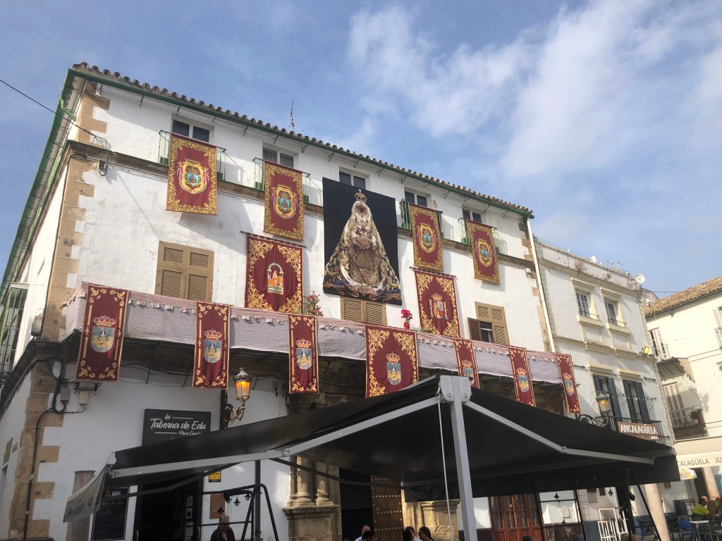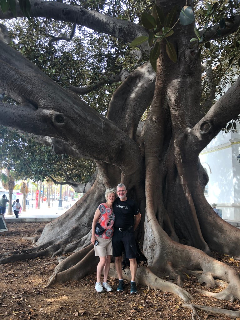Donnerstag geht es mit den Holzkes nach Cadiz. Vorher wollen wir noch El Puerto erkunden. Da der Bus direkt an der Haltestelle der Fähre hält, kaufen wir gleich Karten für die Überfahrt nach Cadiz. Dies stellt sich zur Abfahrt auch als richtig gute Entscheidung heraus, da die Fähre eine halbe Stunde vor Abfahrt ausgebucht ist. Am Plaza de Espana in El Puerto ist große Aufregung. In El Puerto ist am Freitag Feiertag, leider nicht für Andreas, da sein Arbeitsplatz Puerto Real ist. Aber frei gibrs trotzdem. In der Basilica Menor bewundern wir die Jungfrau der Wunder. Um 11:50 Uhr geht es mit der Fähre rüber nach Cadiz. Da es heute teilweise bewölkt ist, ist wieder ein anderes Licht über der Stadt, als ich bisher gesehen habe. Es geht direkt zur Camera Obscura in den Torre Tevira. Zur Camera Obscura gibt es unterschiedliche Meinungen, aber wir waren dort… Danach stärken wir uns auf dem Markt in Cadiz, der Markt ist schon riesig. Die Tunfischköpfe auch. 😊Udo möchte in die Kathedrale, Dörte und ich verbringen unsere Zeit im Kaffee davor. Auch der Turm der Kathedrale wird von Udo bestiegen, es gibt hier nur 13 (?) Stufen. Ich war noch nicht oben. Wir gehen zu den 2 großen Gummibäumen und an der Promenade bis zum Botanischen Garten. Dort holt uns Andreas mit dem Auto ab und wir lassen uns in der von Klaus empfohlenen Eisdiele das Eis schmecken. Somit löst es sich dann auch auf, dass Klaus noch nie in dieser Eisdiele war. Das Eis ist aber wirklich lecker.