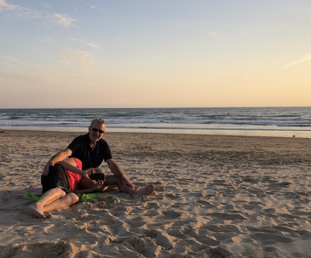Mittwoch schlafen wie erstmal aus, außer Andreas, der muss Arbeiten. Um 10 Uhr hat Dörte eine Besprechung und um 10:45 Uhr haben wir beide Saxophonunterricht mit Nele und spielen Duos vor. Es macht Spaß mal wieder zusammen zu Musizieren. Udo, Dörte und ich beginnen einen Plan zu machen, was und wie wir unsere Tage zusammen verbringen wollen. Manchmal muss Andreas noch seine Zustimmung aus der Ferne geben. Es dauert ziemlich lange, aber dann haben wir einen tollen Plan mit vielen schönen Zielen und Aktivitäten, teilweise auch schon gebucht. Gegen 17 Uhr kommt Andreas nach Hause, wir Grillen und machen uns danach über den Strand auf den Weg zu Volker (Andreas Kollege) um ein zusätzliches Fahrrad für Dörte zu holen. Es ist eine lange Wanderung hin und zurück. Das Fahren auf dem Fahrrad von Volkers Tochter erinnert uns an unsere Kindheit. Zurück auf der Terrasse gibt es Gin Tonic.