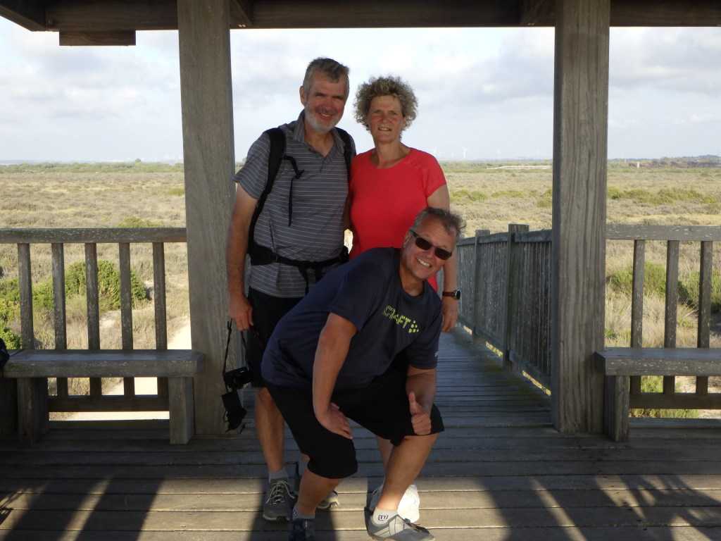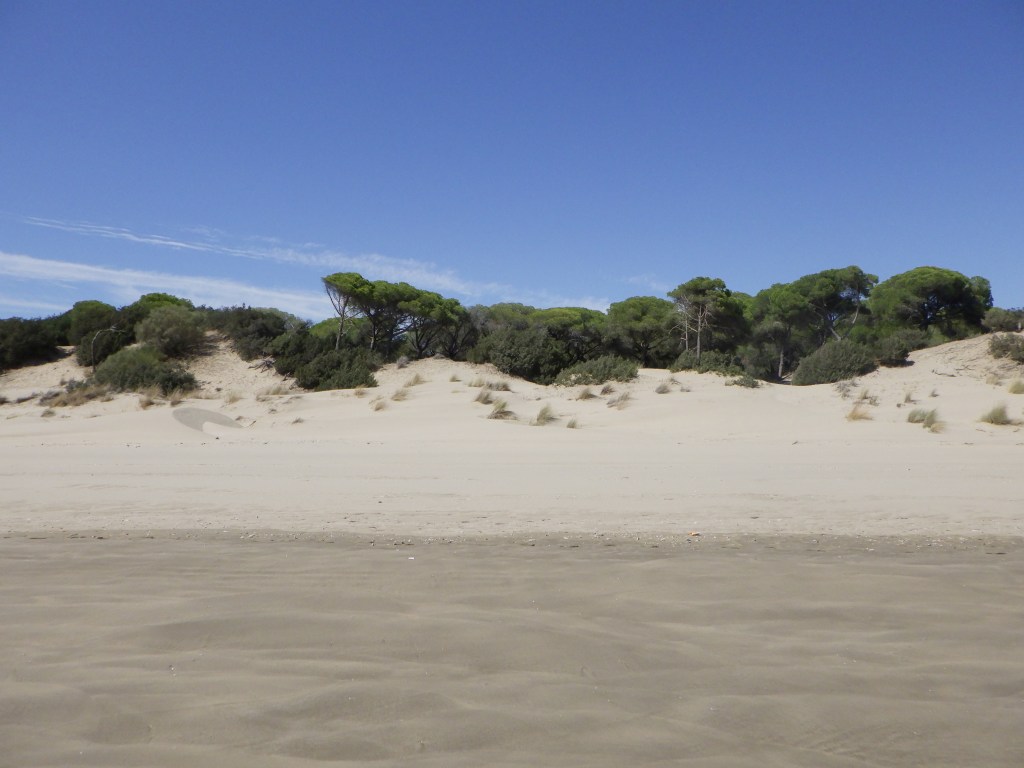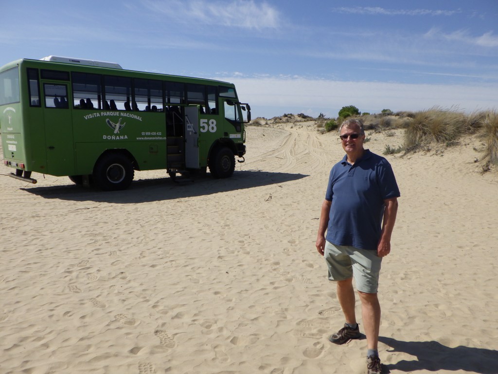 Samstag früh um halb 10 werde ich von der Waschmaschine geweckt. Deswegen hatte ich einen Disput mit Dörte über die Ruhezeiten der Nachbarn, welcher sich schnell auf die mögliche Einschleppung von Kakerlakeneiern in die Wohnung erweiterte. Beim Frühstück geht die Diskussion weiter, unsere beiden Männer sitzen eher geschockt daneben und sagen sehr wenig bis gar nichts. Wir schaffen es, unsere beiden Sichtweisen zu beschreiben, dass die andere sie versteht und spielen danach zusammen Saxophon. Nach dem Mittag fahren wir nach Sanlucar de Barrameda, früher ein kleiner Fischerort gegenüber vom Nationalpark Donana. Wir setzen um 16 Uhr mit der Fähre über und werden von einem höhergelegten Allradbus erwartet. Dieser fährt uns erst entlang am Strand in die Dünen, dann durch den Park. Wir sehen viele Vögel, Hirsche, Rehe, eine Schildkröte und noch einiges mehr. Die Führung im Bus, der Fahrer spricht ununterbrochen, ist leider in spanischer Sprache, aber die Landschaft ist einfach auch so wunderschön. Insgesamt sind wir fast 3 Stunden unterwegs.