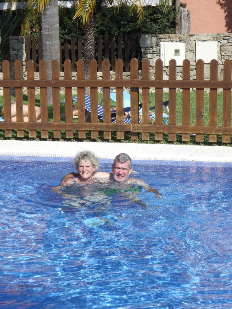 Der Empfang am Flughafen von Dörte und Udo ist herzlich. Alle Koffer sind da. Gegen 16 Uhr sind wir in der Wohnung, räumen kurz ein, essen eine Kleinigkeit und holen alle zusammen Andreas am Mercedes Autohaus ab. Andreas hat die Sachen für unseren Vito (Kühlschrank, Markise …) in den Bus gebracht und wir wollten das Leihauto endlich abgeben. Das macht Andreas doch erst am Dienstag. Abends grillen wir auf der Dachterrasse, schwatzen viel, probieren Sherry und natürlich „Tinto Verano con naranja“.