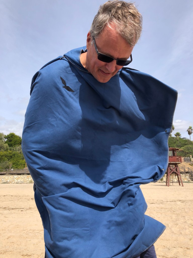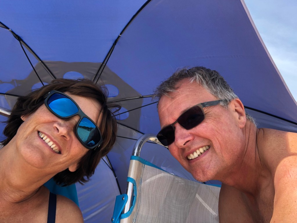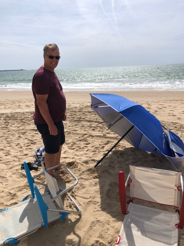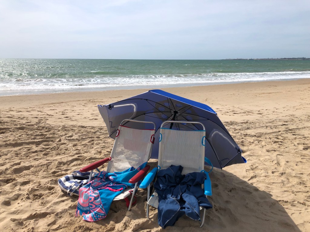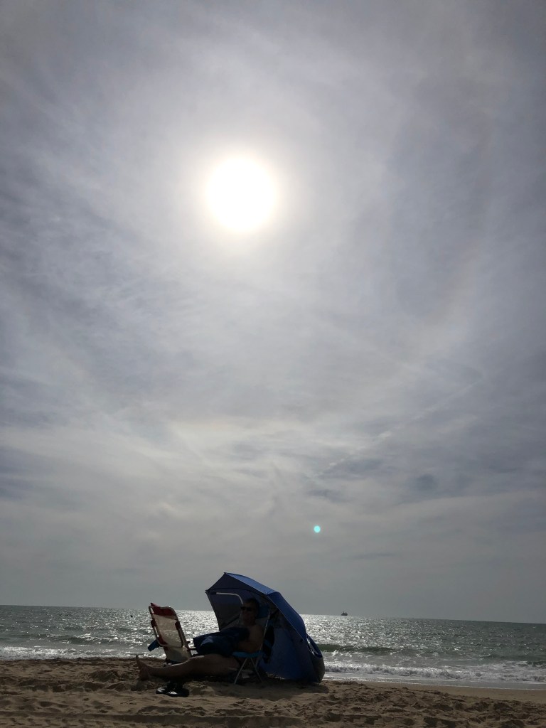 Füge weiter die Bilder in den Blog ein und werde fast fertig. Andreas kommt früh von der Arbeit. Darüber freue ich mich, es gibt gemeinsames Mittagessen. Danach geht es mit dem neuen Sonnenschirm zum Strand. Es ist sehr leer und windig, leider haben wir die Heringe und Strippen ausgepackt und dann vergessen, aber ist trotzdem schön. Wir bekommen auch noch ein Naturschauspiel geboten.