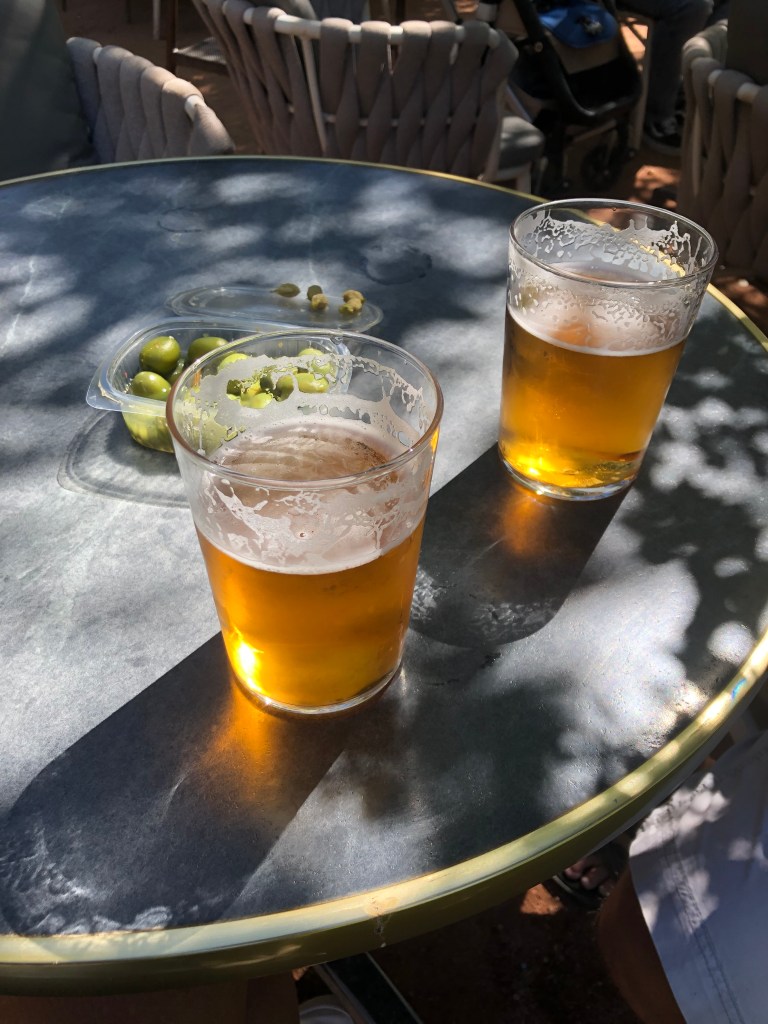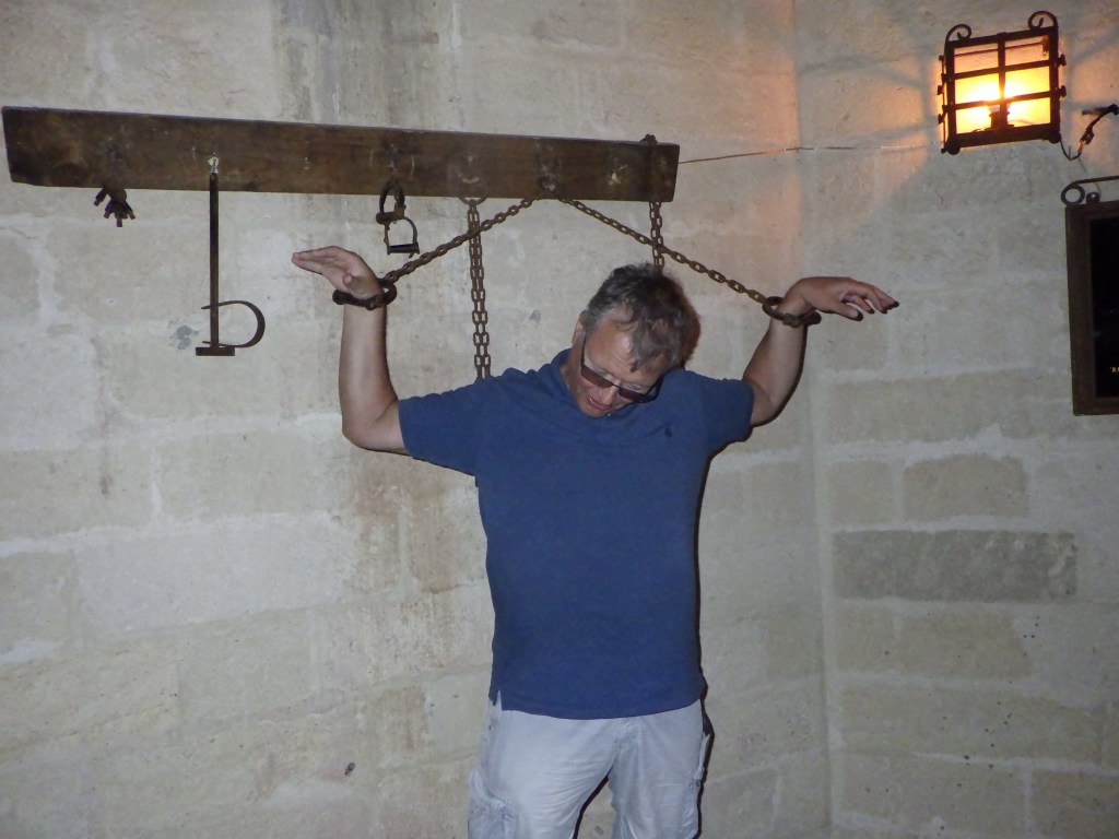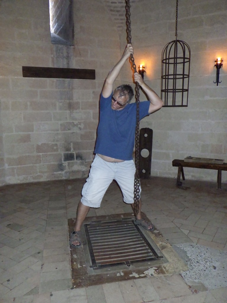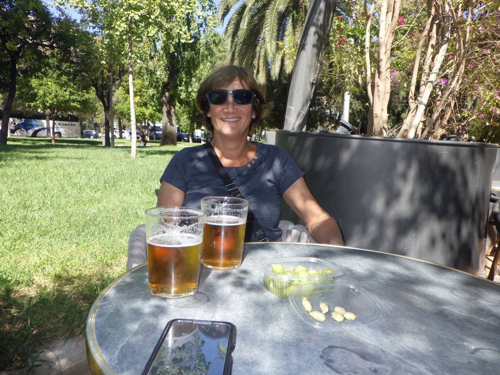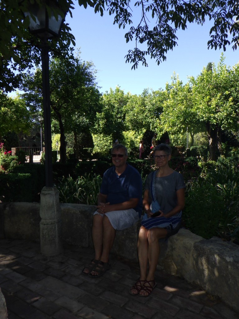 Das Frühstück im Hotel ist ausgezeichnet, ich bekomme sogar glutenfreies Brot. Kurz nach 11 Uhr treffen wir uns mit Maren wieder im MV-Park. Ich mache Fotos für Dörte mit den Meeresfrüchten, sie würde sich hier sehr wohl fühlen. Wir gehen zum Alcazar und bekommen einen Schreck, sooo eine lange Schlange. Wir überlegen kurz zu gehen, entscheiden uns dann aber doch uns anzustellen. Es gibt 2 Schlangen, eine mit Kiosk und Verkäufer und eine am Automaten. Andreas schafft es am Automaten Karten für uns zu kaufen. Im Alcazar ist es wie immer sehr schön. Wir wandern durch die Gänge und Gärten und entspannen uns. Auf der Fahrt nach Cordoba haben wir schon die Burg hoch oben auf dem Berg, ca. ½ Stunde von Cordoba entfernt, gesehen. Dort wollen wir hin, es ist das „Castillo de Almovodor“. Oben angekommen, sind wir total begeistert, wie im Märchen. Schnell stellen wir fest, dass hier der Film „Game of Thrones“ gedreht wurde. Wir bekommen viel geboten, wunderschöne Aussichten, Kerker mit Foltergeräten, auch das Schwert Ecxalibur usw. Wir wandern zurück auf unseren Parkplatz und stärken uns in der Gaststätte. Dann geht’s mit dem Auto zurück nach El Puerto. Dort gibt es natürlich Begrüßungsbierchen und Tinto verano con naranja. Maren und Ronny waren ja schon einmal im Mai bei Andreas, somit kennt Maren sich hier schon aus. Ab morgen hat Maren Besprechungen in Cadiz. Ich bin ziemlich müde und verabschiede mich gegen 22 Uhr ins Bett, die beiden schwatzen noch bis Mitternacht auf der Terrasse.