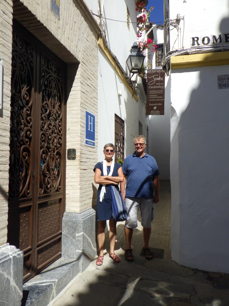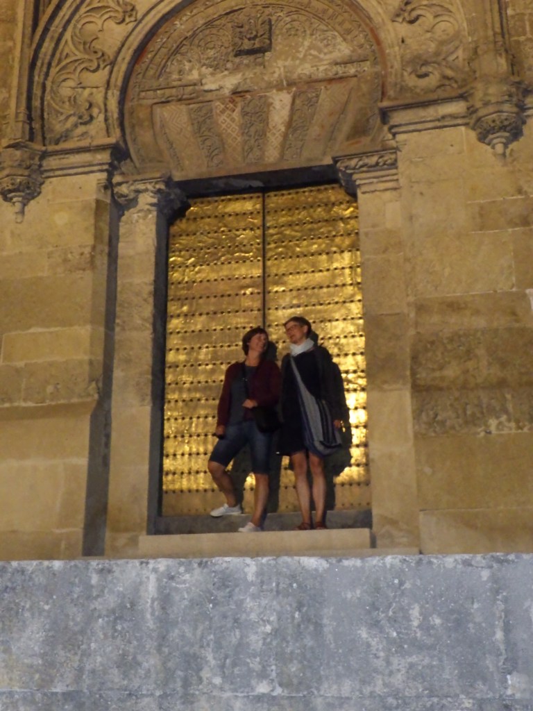 Samstag geht es gegen 9 Uhr los nach Cordoba. Wir haben uns dort mit Maren verabredet. Leider führt uns unser Autonavi zick-zack duchs Land und wir brauchen fast 4 Stunden. Sind gegen 13 Uhr dort und erfrischen uns im MV-Park mit einem Bierchen. Wir freuen uns sehr über die Begrüßung – Love MV. Maren kommt aus ihrem Hotel in den Park, es wird erstmal geschwatzt, dann bringen wir unsere Rucksäcke in unser Hotel und machen uns fertig Cordoba zu erkunden. Als erstes geht es in die Mezquita-Kathedrale, hier ist es sehr beeindruckend. Wir gehen durch das jüdische Viertel, in die Synagoge und über die Brücke. Cordoba ist eine sehr schöne Stadt. Wir werden hungrig und kehren im jüdischen Viertel in ein Restaurant ein, es gibt für alle sehr leckeres Fleisch. Der spanische Wein schmeckt auch sehr gut. Maren bekommt noch eine Einweisung, wie man das Handy zum Selfie machen hält. Heute hat sie ihr 1. Selfie gemacht, mit uns. Satt und zufrieden geht’s ins Hotel. Im Hotel schlafen wir sehr gut, Andreas sogar besser als zu Hause.