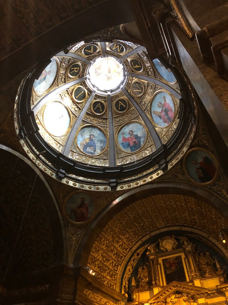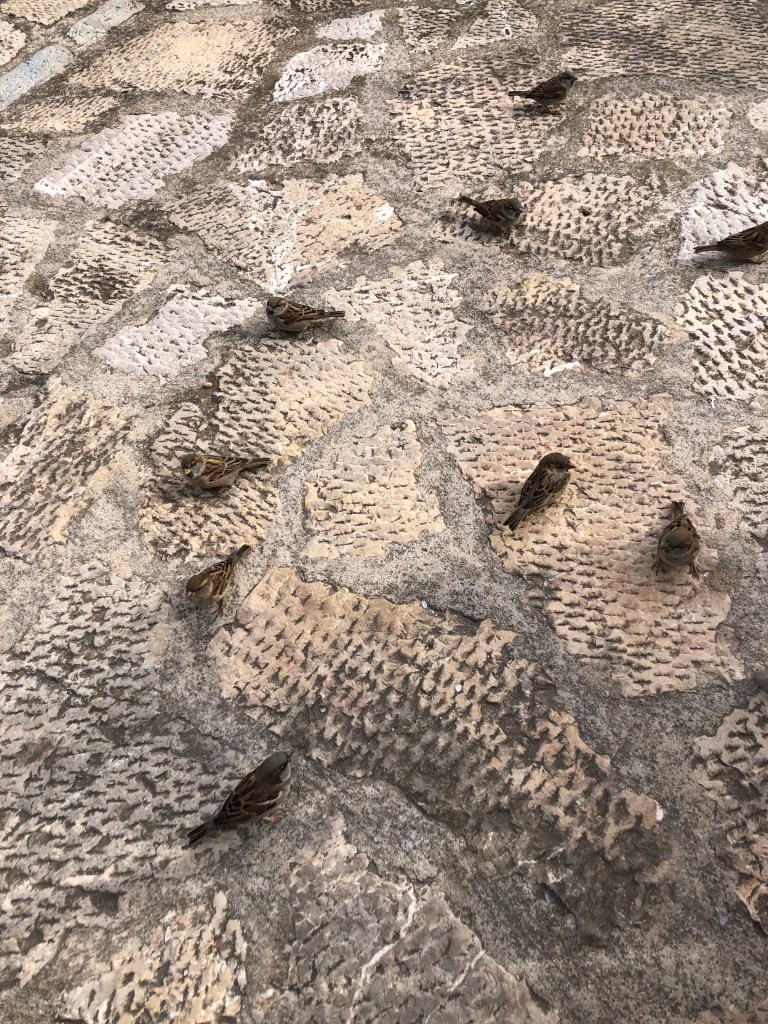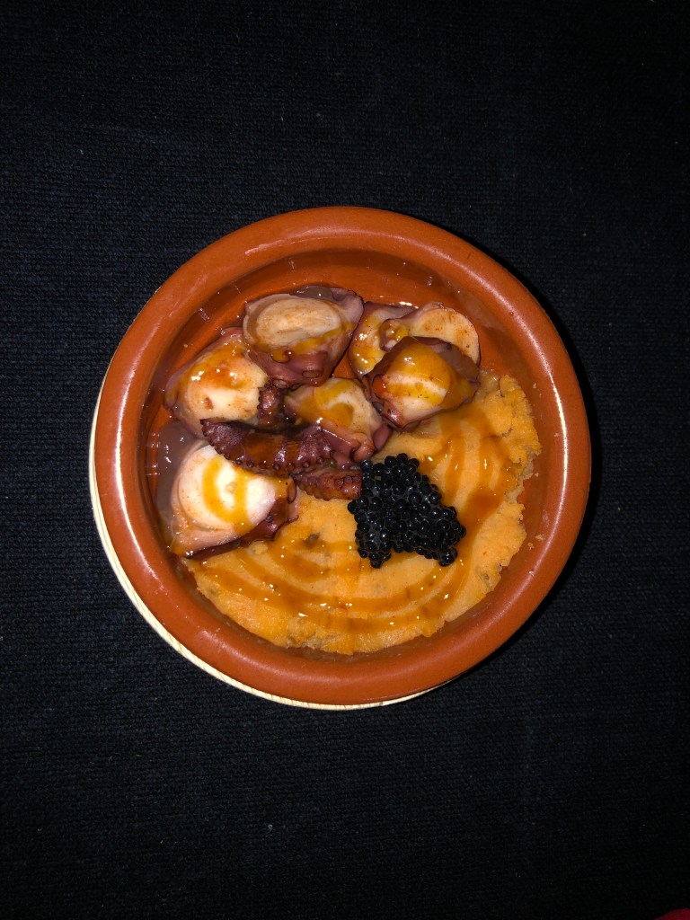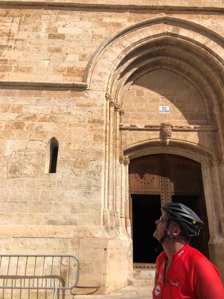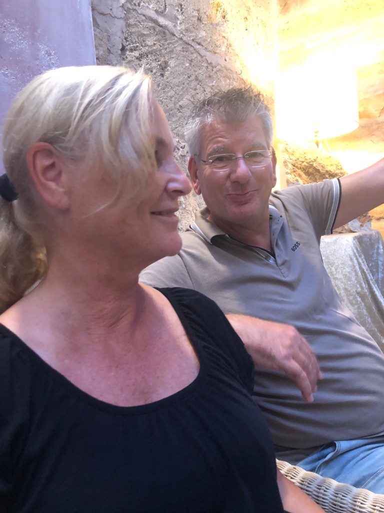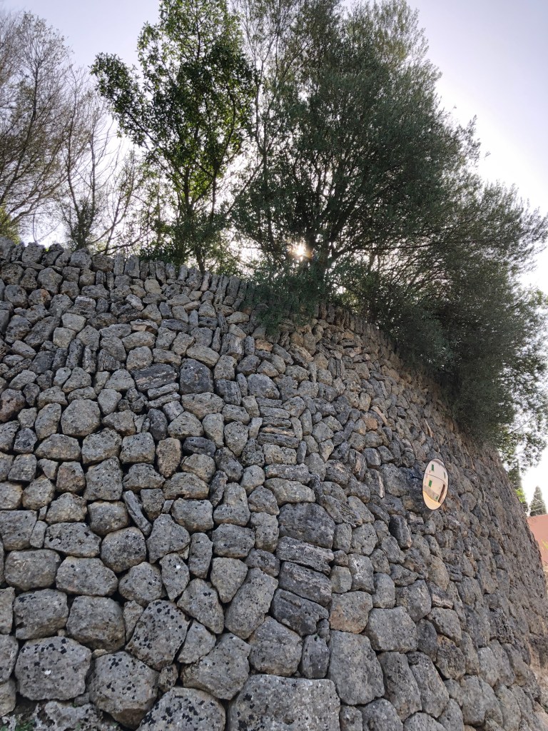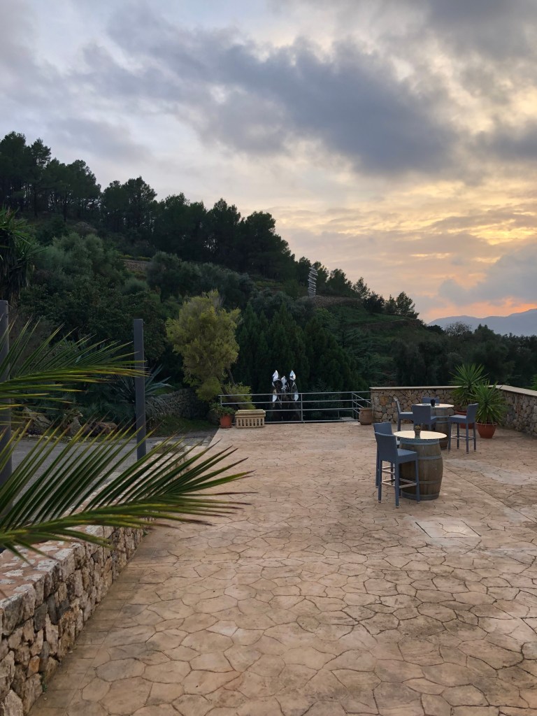 Am Montag fährt Andreas bei Ernst und ich bei Dieter in der Gruppe mit. Ernst ist schon ne oder zwei Nummer/n höheres Level. Alle sprechen auch am letzten Tag darüber, wie super Andreas – besonders die Berge hoch – fährt. Und das mit einem Trekkingrad. Wir fahren schon um halb 10 los, weil es auch heute wieder regnen soll. In Sineu kommen wir gerade an, dann beginnt es zu regnen. Wir stärken uns im Bäcker mit Tonic und Kaffee. Los fahren wir mit kleinen Nieseltropfen, kommen dann aber doch ziemlich nass in der Unterkunft an. Der Regen ist schön warm, es stört uns nicht. Ich muss mir noch den richtigen Platz zum Fahrrad fahren in der Gruppe suchen. Hinten fährt es sich sehr schwer. Man muss erst ständig bremsen und dann wieder viel treten, um an der Gruppe dranzubleiben. Wir waschen die Fahrräder, Andreas Gruppe ist ca. 15 Minuten später als wir da. Er ist kaputt, aber auch sehr stolz. Ich auch. Nach einer ausgiebigen Dusche gehts in die Sauna. Heute ohne Aufguss, dafür allein. Gegen 17 Uhr werden wir im Hotel abgeholt und fahren zum Weingut Castell Miquel. Wir werden mit leckeren Tapas und Wein begrüsst. Besonders die gebratene Blutwurst mit Kartoffelschaum ist lecker. Ich werde auch mit den glutenfreien Gerichten sehr gut versorgt. Manchmal ist es besser, als das eigentliche Gericht. Wir werden über das Gut und durch die Produktion geführt. Der Käufer/Besitzer war ein Apotheker und wollte deshalb seine Flaschen mit Glaskorken verschließen. Diese werden im Laufe des Abends verteilt. Wir probieren 4 verschiedene Weine und werden mit super Gerichten verwöhnt. Als Andenken bestellen wir uns ein paar Flaschen Wein für zu Hause.