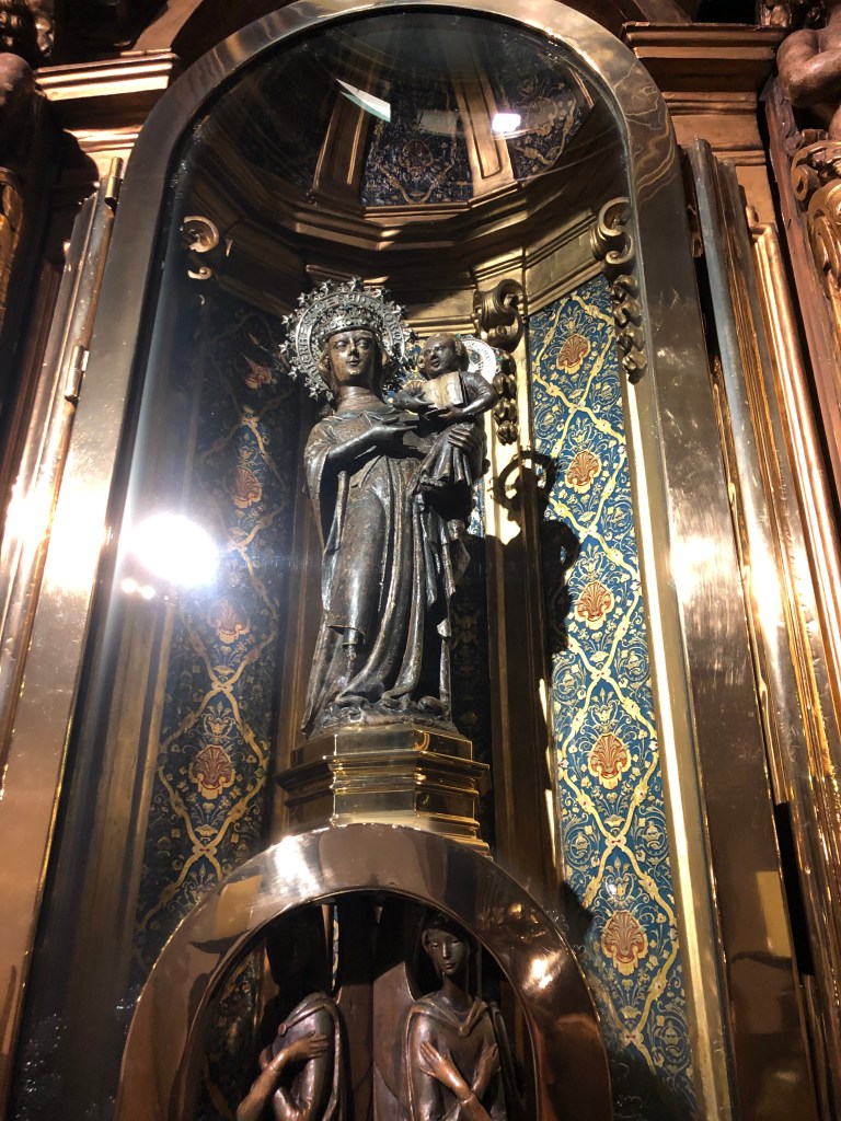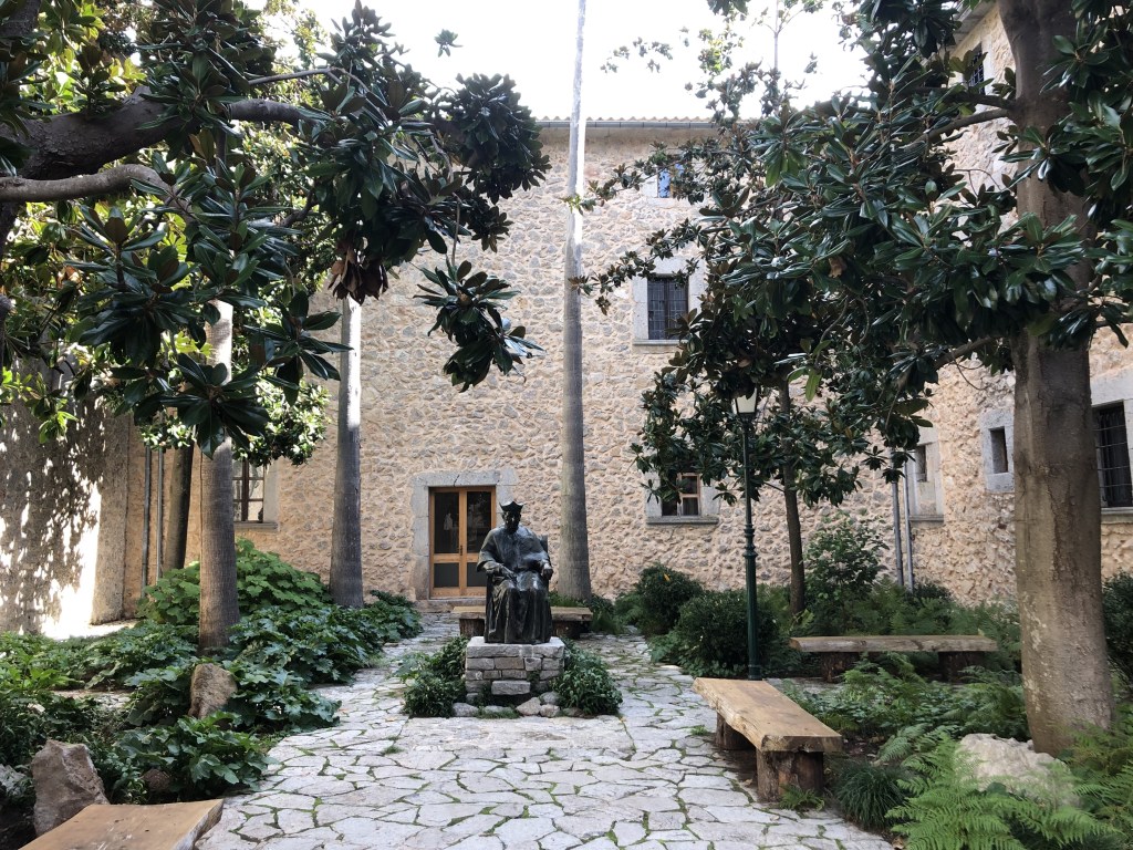 Donnerstag früh ist es ganz schön windig. Der Plan in Dieters Gruppe ist Kloster Lluc. Das ist ein langer steiler Anstieg. Ich bin kurz vorm Abwählen. Andreas fragt Dieter, ob wir die Tour nicht verkürzen können. Damit sind alle einverstanden und wir beginnen die Tour. Dieter fährt ein E-Rennrad, manchmal ganz schön schnell. Er erklärt aber alles gut und wir fahren hoch zum Kloster Lluc. Zwischendurch frage ich mich, warum ich mir das antue. Aber alle müssen sich anstrengen und irgendwann kommen wir im Kloster Lluc an und belohnen uns mit einem Kaltgetränk. Ist schon ein schöner Ort. Andreas und ich gehen in die Kirche und bewundern die schwarze Madonna. Auf der anderen Seite geht es von der Tankstelle den Berg über die Serpentinen runter. Die Hände tun vom Bremsen weh. Manchmal erhasche ich doch einen Blick von der schönen Natur. Wir sind alle stolz die Tour geschafft zu haben und freuen uns auf der Terasse. Das war unsere letzte Tour. Die Pedalen werden abgebaut. So schnell vergeht eine Woche. Auch Dieter freut sich, dass es keine Unfälle gab. Am Hotel ist es sehr windig, man friert am Pool. Ich gehe nochmal in die Saune und packe dann schon langsam Sachen. Um 19 Uhr gibt es Abendbrot im Hotel, wir schwatzen viel. Es war eine tolle Truppe. Martina und Harald treffe ich bald wieder.